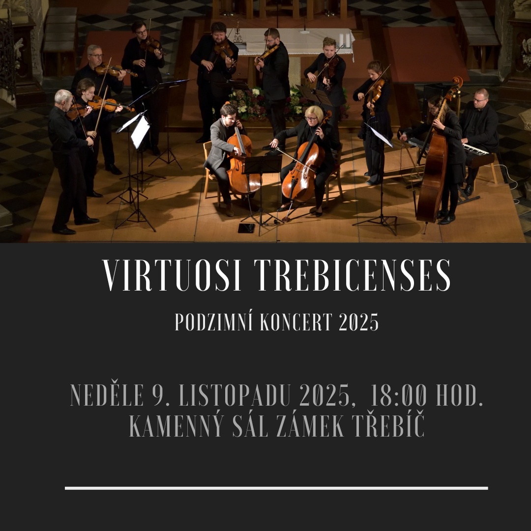 Srdečně vás zveme na další koncert orchestru Virtuosi Trebicenses, který se uskuteční v neděli 9. listopadu 2025 od 18:00 v Kamenném sále zámku Třebíč.